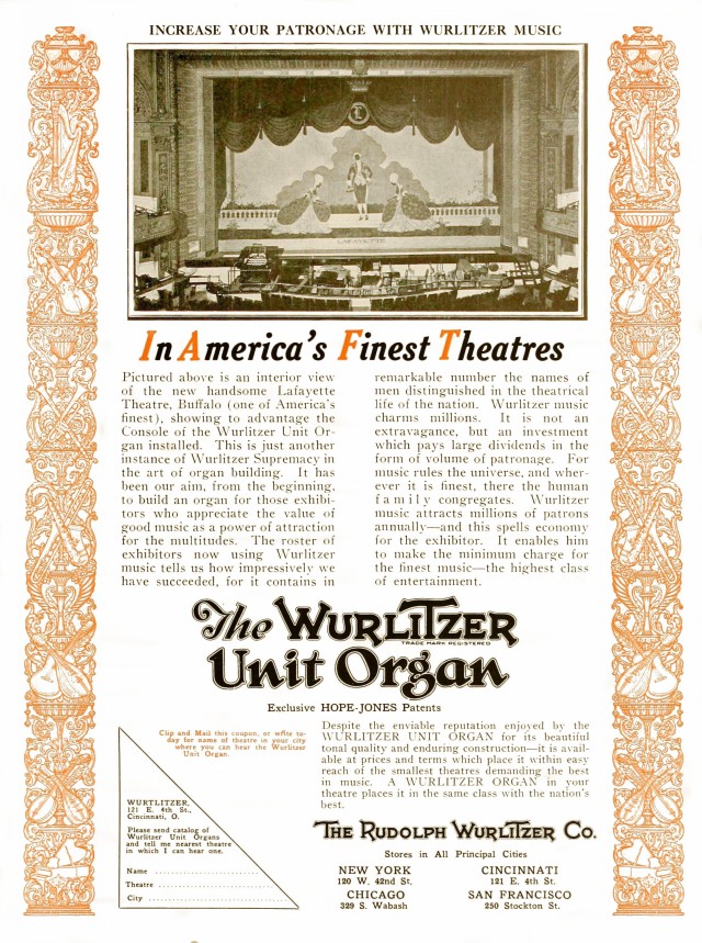 Advertisement for The Rudolph WurliTzer Co. featuring Opus 501