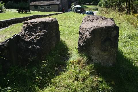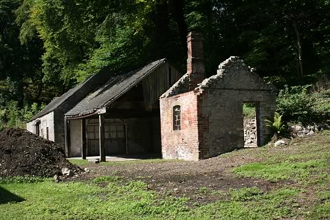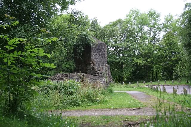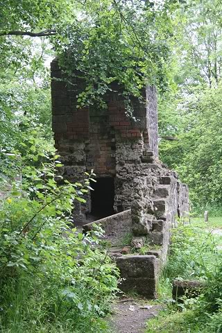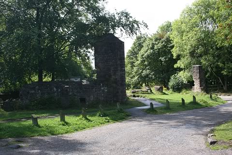 Remains of the lead mine at Black Rock. The Information Office, shop and picnic area is alongside to the left.