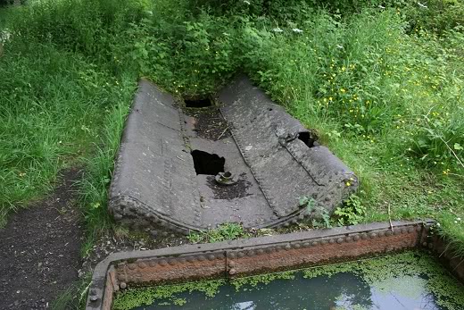 A Saddle Tank locomotive 'water' tank. The other appears to be the tank of a water tender, without the safety railing around the top. I wonder why these have been buried by the track side
