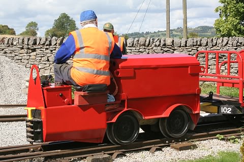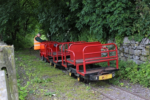 The battery operated loco and wagons are genuine Ex quarry vehicles.