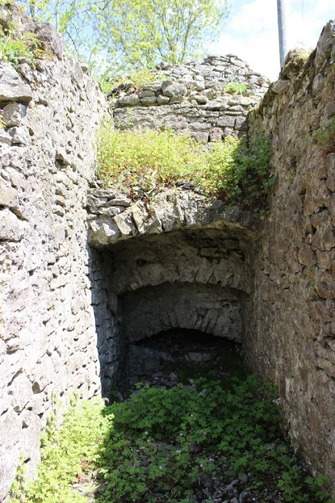 The remains of the front of the building seen above. The doorway has been filled in with stone blocks