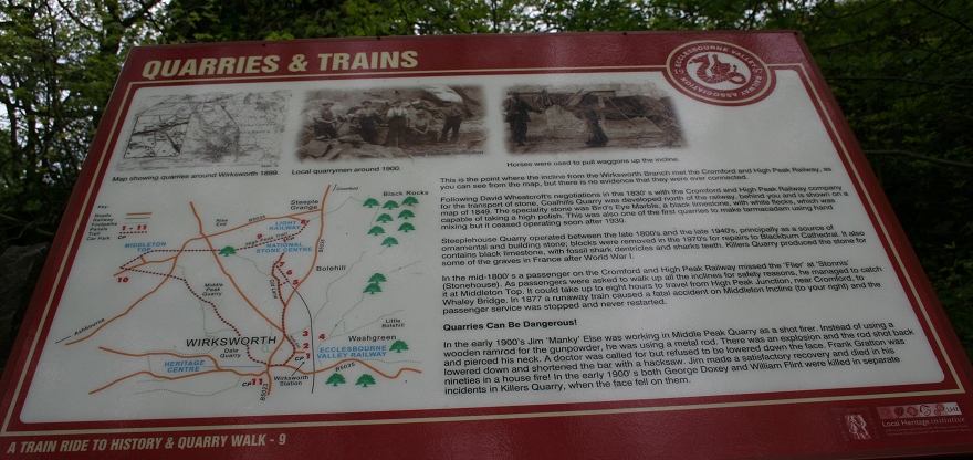 At this point a branch ran off the C&HPR into Killer's Quarry, known today asMiddleton quarry. It has since been taken over by the Steeplehouse narrow gauge railway.
