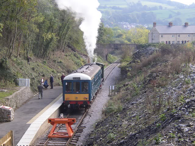 A train arrived off the Ex Killer's Quarry branch. Left: I am standing on the actual Steeplehouse junction site. Right: a train arrives from the larger quarry.